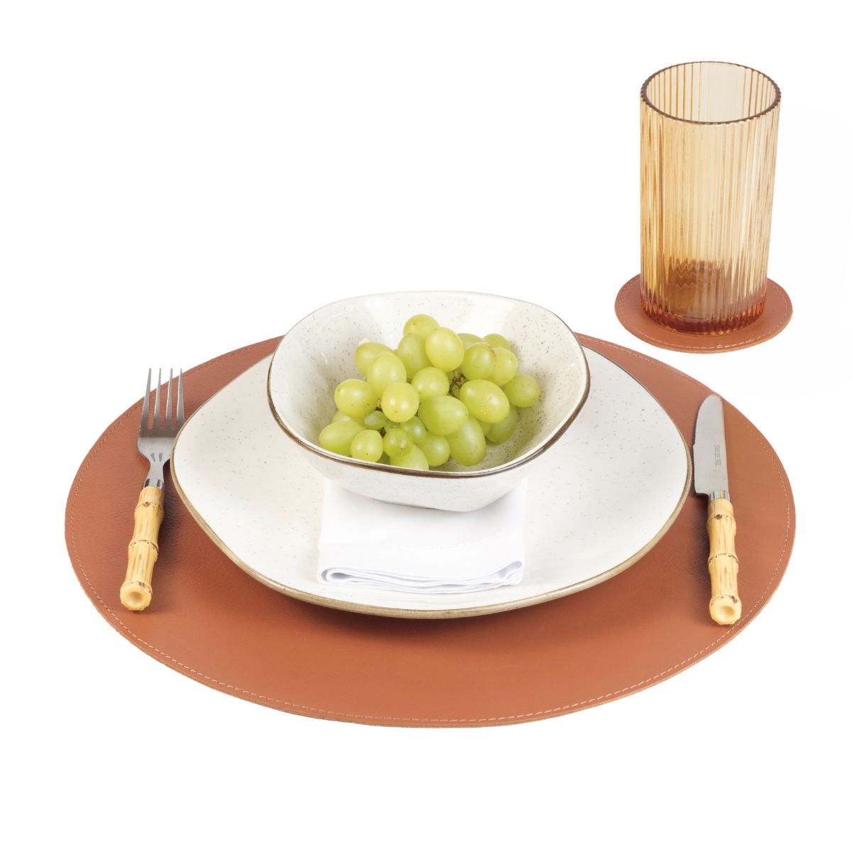 Jogo Americano Redondo Couro Terracota | base prato e copo