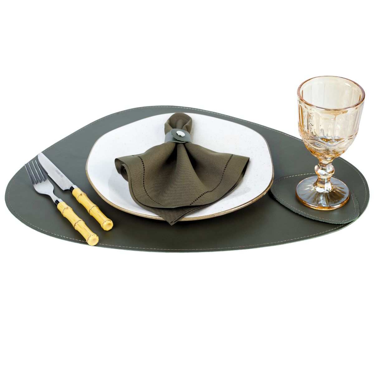 Jogo Americano Orgânico Couro Verde Oliva | base prato e copo