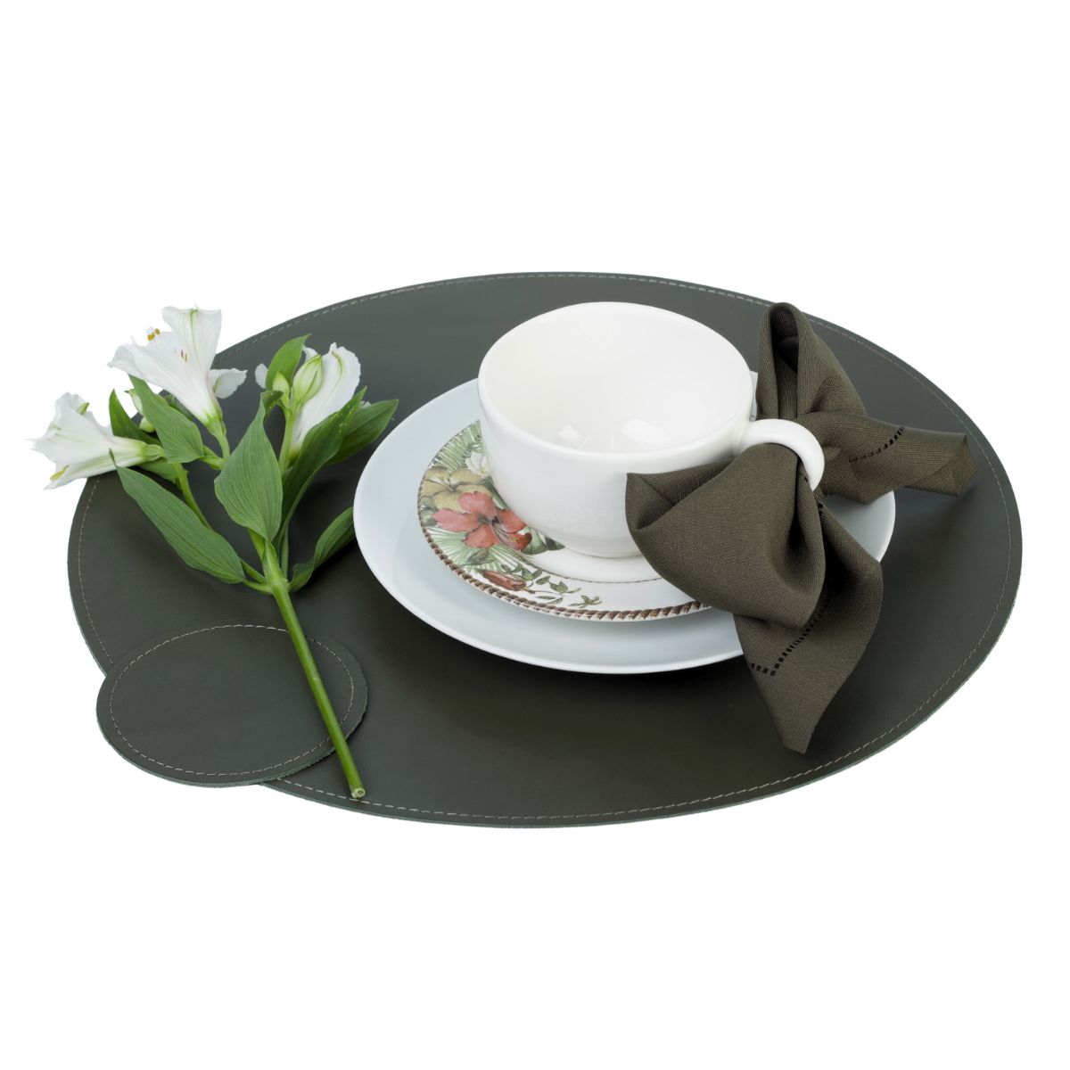 Jogo Americano Couro Verde Oliva Redondo | base prato e copo