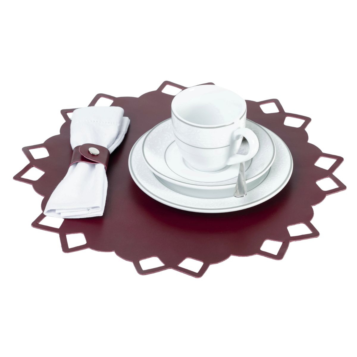 Jogo Americano Floral Couro Bordo | base prato e copo